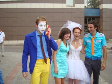 еще есть времечко!!! вы уж извините, что в таких попыхах рассказываю)) выпили мы, выпили, мама нас провела...выходит на улицу - а там людей!!!! :shock: конфетки покидала, в машины загрузились и поехали на фотосет :D если б вы тольк видели ,как прохожие скручивали головы!!! у них отвисала челюсть!!! а больше всего бросалась красная шляпа нашего друга)) (я не смогу это описать, я лучше потом фото выложу) съездили на стену..и потратили там кучу времени!!! оч жаль((( но фото с машиной ,в ней, на ней, с гитарой, трубой, скрипкой, граммофоном!!!!!и начали по времени очень сильно вылетать, бегом помчались к граффити, но фоткаться бфло невозможно - вылезло солнце :roll: потом в парк горького, там пару фото - и в ЗАГС!! там было очень волнительно, я все никак не могла понять, что происходит..голова шла кругом...и вот нас ставят перед дверями...предыдущая пара задерживается...а когда открывается дверь гости той свадьбы таращатся на НАС!!!! а мне это в кайф!!!! мне так весело!!!! и вот заходим мы!!! музыка.....и у меня начинают накатываться слезы (муж сказал, что и у него тож :D ) стоит, держимся, пытаемся речь слушать...спрашивают...Муж долго молчит(я в это время думаю - засранец!!!) , а потом - ДА!!! я тож вроде согласилась)) поставили подписулечки, мой братик поднес нам колечки, обменялись, нас объявили мужем и женой - гром апплодисментов!!! =D> прошли в зал - глупые вопросы, скукотища))) надула 4 детенка))) и вот надо показаться всем))) выходим ИЗ загса, муж берет меня на руки..сыплются лепесточки, все кричат..голова кругом!!!!гостей рассадили по машинам и отправили в ресторана, а сами загрузились в свой кадиллак и поехали в парк напротив Виктории..там, конечно, фонтаны не работали, мы жутко устали, цветы от жары поникли((( но рядрм был МУЖ (обажаю это слово!!!) я была счастлива)))