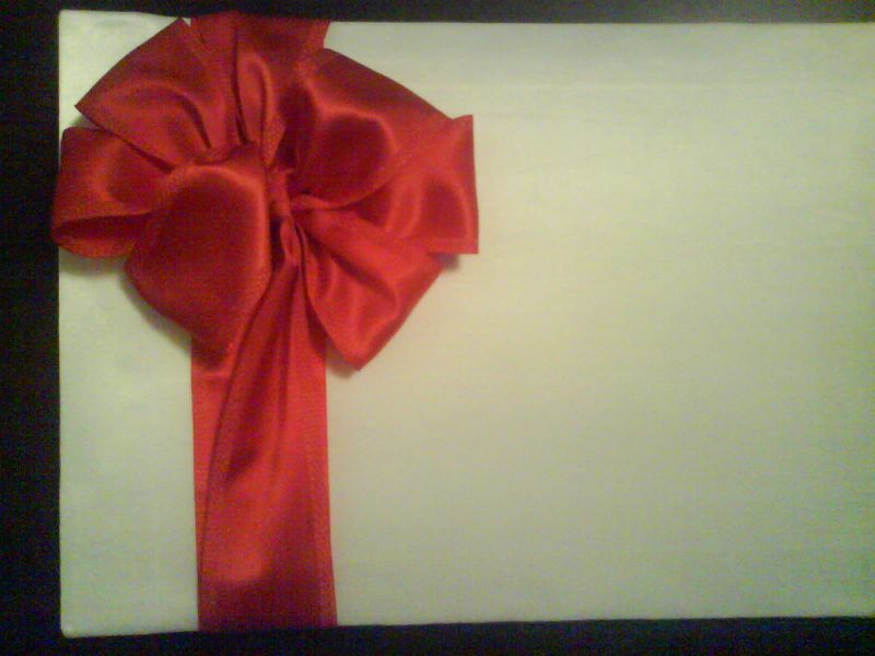 Ещё я сегодня начала разнашивать свои туфельки! Ох, я тяжело же мне придётся в день Х!!! Также я с мамочкой сделали альбом для пожеланий! в 4 руки работали! как получился, мне нравится! Осталось только несколько вопросов решить. Это как края на сгибе обработать и какого цвета ленточку прикрепить! Хоть свадьба у меня и зелёная, но как таковой она уже давно перестала являться... туфли другие, пригласительные другие, вот и альбом для пожеланий... хотя! Вообщем с одной стороны мне нравится как на белом фоне выглядит красная лента, а с другой стороны свадьба то планировалась зелёной! Девушки, простите за качество, фото с телефона, но идея надеюсь ясна!