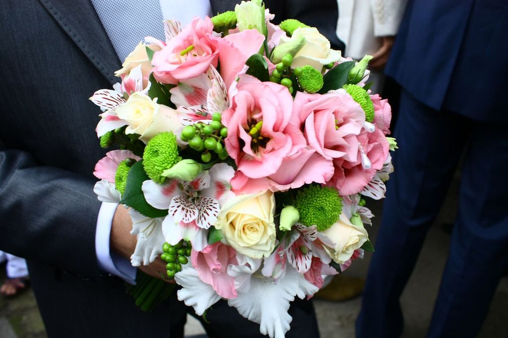 А вот такую "подкову" из цветов они нам подарили при выходи из церкви: Вложение:
