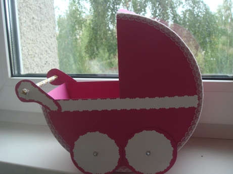 А ещё, я вчера сделала одну колясочку для сборов на мальчика/девочку/двойню. Осталось ещё 2 штуки сделать.. и как-то украсить немного эту))