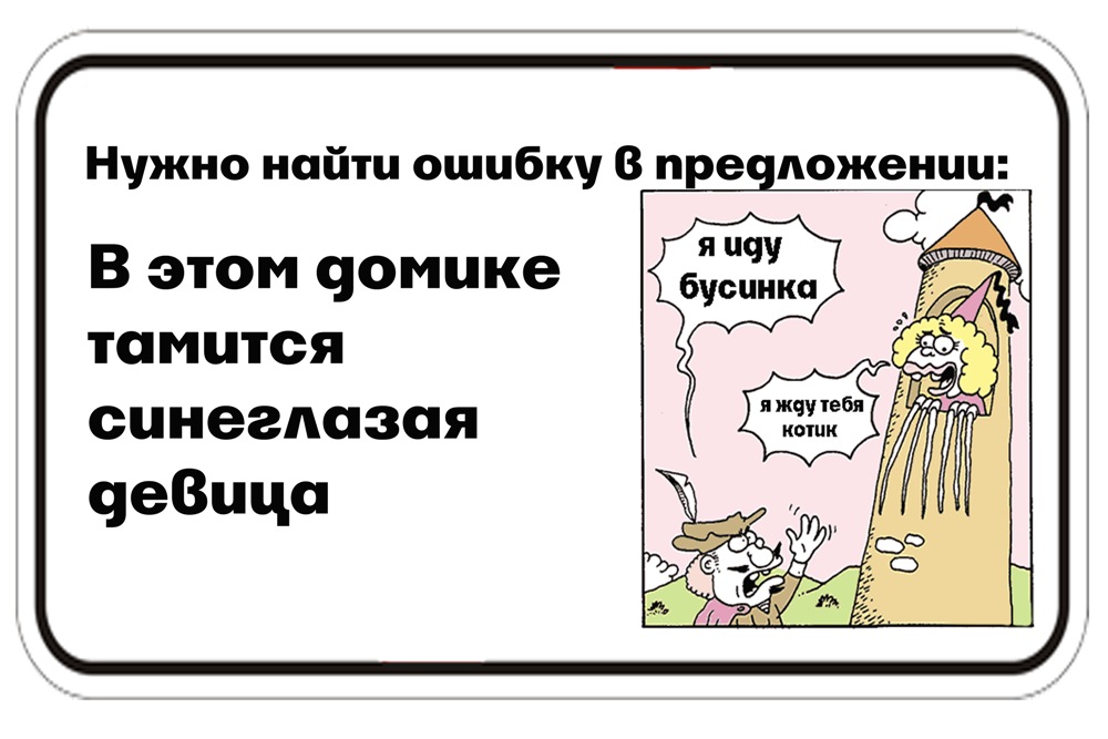 2. Табличка с надписью.." В этом домике тамится синеглазая девица" Надо найти ошибку.. ну первое эт слово тОмится... ну и у меня зеленые глаза)))