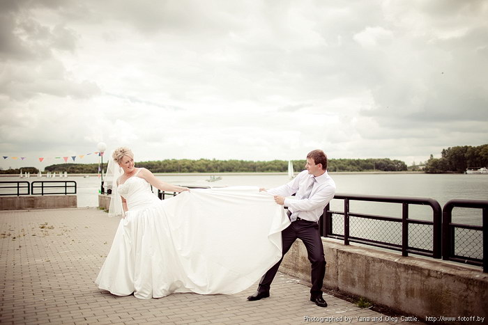 Фотосессия Выехали из дома мы в 11:00,всё по плану.Погода была просто суппер,как по заказу:солнечно,сухо и не жарко.Поехали сначала на Минское море.От моего дома 10 мин. езды.Гостей оставили около машин,сами пошли фоткаться.Я долго не могла сосредоточиться.Казалось у нас ничего путного не получится.Потом вошли в кураж и всё пошло как по маслу.У фотографов был очень интересный ход (как потом мы заметили по фото).Мы пазируем,потом Яна говорит:подождите,я настрою фотоаппарат,мы расслобляемся,полностью на своей волне,а в это время оказывается она нас фоткает))))И фото получаются очень живыми. После Минского моря мы поехали на Минск-Арену.Я вообще-то была против этого места.Там какие-то очень стандартные фото получаются.Я очень ошибалась,всё зависит от фотографа.Даже очень примитивное место можно обыграть по-разному.