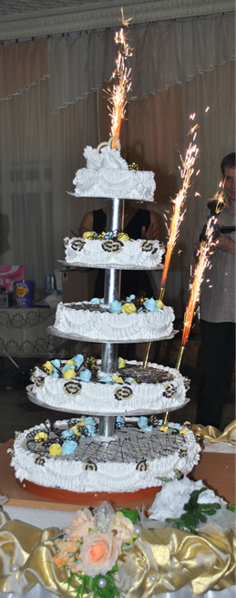 Наконец моя работа дала мне возможность продолжить свой отчет. Пятница, мало чем отличалась от предыдущих 4 дней, правда в нэтот день мой муж смог мне хоть чем-то помочь. С утра мы поехали на Ждановичи докупать еду в кафе, по дороге заехали на Монтажников (хотели бутоны прикупить, но видно была не судьба). На Ждановичах все необходимое смогли купить за часа 3 и оставили там 4млн. приблизительно (я была очень шокирована увидев цены на все). После Ждаников я полетела в Дзержинск с друзьями на маникюр, а Ариф остался забирать забытые мною вещи и моего двоюродного братика))). На три часа я выпалас предсвадебного дурдома и наслаждалась происходящим. Правда по окончанию все продолжилось(((. Оказалось что брюки не подложены,а у нас после 6 никто не работает, пришлось искать через знакомых, малознакомых и совсем не знакомых людей швею. И о счастье, она нашлась. Дальше было много нужных дел и закончился день тем, что я сказла СВАДЬБЫ НЕ БУДЕТ!!! Спать в тот день я легла в 2 часа ночи, и как-то мне совсем не спалось, меня всю ночь трясло. Подыматься я планировала в 7,00, но в итоге подняла всех в 6,40. Умылась и поехала собирать народ (свидетелей, парикмахера и фотграфа). Пока мне делали прическу родня готовила фуршет. Потом приехал братик привез видеооператора, букет и подарок для свекрови и свекра. Увидев букет я КРИЧАЛА от счастья, он был именно таким как я хотела, в нем были лимонно-желтые калы и синии гортензии. Я отправила брата с видеооператором и фотографом к мужу там они и поснимались и проводились и приехали ко мне. Правда им пришлось постоять с полчасика под дверями тк видео надо было снять и мои сборы. Пришлось отказаться от выкупа (что меня очень огорчило) времени на его подготовку было мало да и жених задержался. Когда моего мужа пустили ко мне в его лице я увидела такое счастье, любовь, нежность и восхищение... Он быстренько подарил мне букет, я прицепила ему бутоньерку, свидетельница одела бутоньерку свидетелю. Мы быстренько выпили по три раза, родители сказали пару слов, блгословили нас и поехали мы фотографироваться. Сорь, надо убегать, окончание и фото обещаю написать до вторника