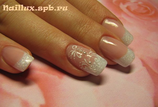 2. Прическа. Зря ты так на местных мастеров. Я знаю как минимум двух хороших - Марина Буцень и Алеся Черник. В добавок, Марина отлично делает маникюр и наращивание. К сожалению, на мою свадьбу она планировала уехать, поэтому мне пришлось искать другого мастера.... записалась к Алесе (прически она хорошо делает - это 100%, ещё она прелагает макияж, но тут я ничего не могу сказть - не видела работ). Правда, за две недели до свадьбы мне пришлось отказаться от Алеси, т.к. у нас немного перекрутилось утро дня Х... макияж мне делали в Минске, потому для удобства договорилась с другой... макияж и прическу мне делали в 4 руки (девочки между собой подружки, привыкли так работать). Макинюр мне за день до свадьбы делала Марина. Был фрэнч, а на безымянных пальцах из акрила были нежные белые цветы.