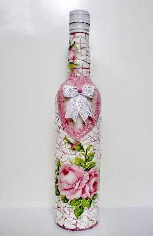 И так о бутылках. Очень хочется не просто ставить наши бутылки на стол, а немного их задекорировать. Многр разных мыслей. Надеюсь на вашу помощь. 1. Декупаж, наверное сделаю шампанское много бутылок (придется их потом забрать, а может кто-то из гостей захочет) Очень люблю эту технику, да и время не много относительно занимает. Единственное конденсат не испортит ли его? Напитки ж будут охлаждаться. Но наверное побольше слоев лака и все будет отличною Чтобы вы понимали о чем я, прилагаются картинки как это примерно будет выглядеть. Но это не окончательный вариант, да и наверное бутылки будут разные. Обязательно будет присутствовать кружево, ленты и наверное немного жемчужин.
