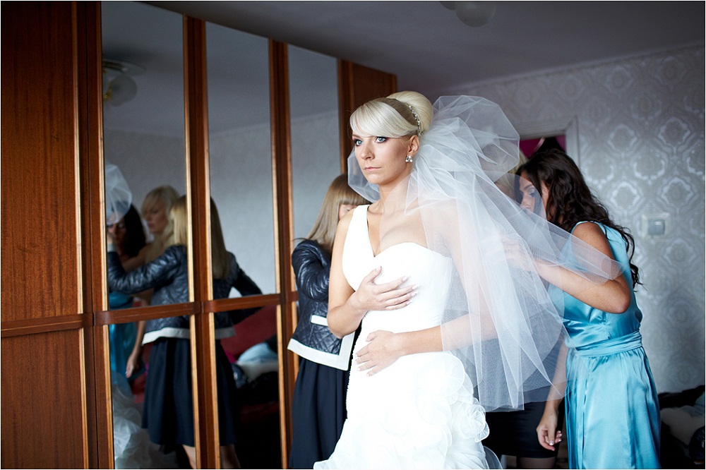 Спасибо, девочки, что оценили! Буду продолжать…. Как я уже писала: утром, видок у меня был ещё тот: разбитая, синяки под глазами и все остальные неприятные последствия бессоных ночей перед свадьбой Встала я в 6.00, родители ещё спали, я неспешно приняла ванну и выпила кофе, люблю собираться, когда никто не мешает)))) Потом стала пытаться доделать кое-какие мелочи, но, конечно, ничего не успела))) Парикмахер Анастасия Плешко должна была приехать в 8.00, но немножко опоздала на минут пятнадцать. Я ни капли не расстроилась, так как отвела на парикмахера и визажиста по 2 часа, тем более Настенька профессионал и причёски делает очень быстро. Настроение у меня было отличное, я была спокойна, было такое ощущение, что я готовлюсь к какому-то большому празднику, но никак не к своей свадьбе, к свадьбе лучшей подруги что-ли……но это было только начало))))) Пока Настя делала причёску мы болтали на отвлечённые темы, как будто ничего не происходит, просто мне делают причёску…..фигня, что свадебную))))) В это время пришёл видеооператор – Дмитрий Прохор и начал тихонечко настраиваться и снимать, пока всё тихо….всё спокойно… Вслед за оператором приехала фотограф Варвара Сергеева с ассистентом Валентиной. Не могу не отметить, что тандем получился весёленький: Дмитрий с Варварой постоянно шутили, хвастались друг перед другой камерами и всякими операторскими прибамбасами, мешали друг другу, в хорошем смысле, каждый пытался урвать хороший кадр первым)))  В общем, меня это забавляло  и помогало отвлечься, так как постепенно ко мне подкрадывался жуткий нервяк… Причёска была готова! Всё, как должно было быть, но я в этом и не сомневалась, так как ездила к Насте на пробную и знала, что всё будет гуд!!!! Спасибо, Настенька, ты супер)))) Я оставила операторов в своей комнате фоткать свадебные штучки и пошла воровать бутерброды с сёмгой…..в это время родители накрывали на стол)))) Визажист Алиса Островская опаздывала…………