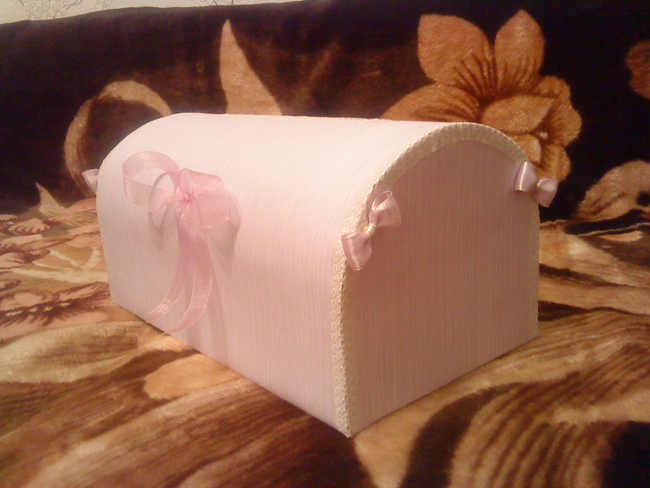 девочки выкладываю фотку сделанного мною сундучка, он сам светло-фиолетовый,может из-за освещения цвет невиден