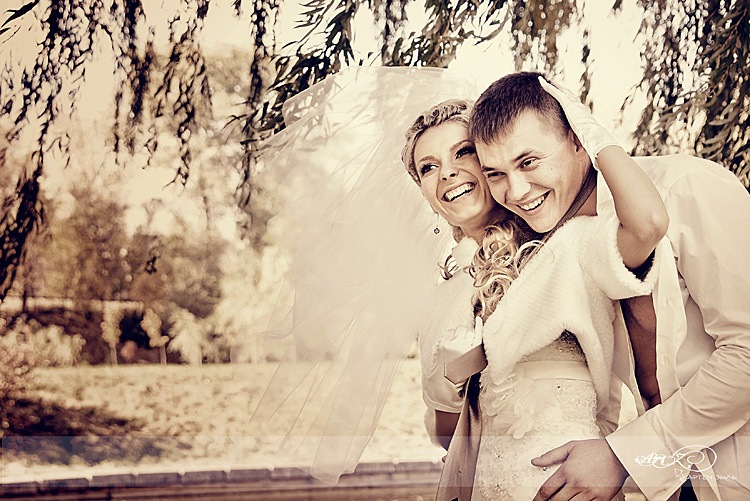 На роспись мы опоздали  Однако, нас никто не торопил, меня проводили в красивую яркую комнатку с огрооооомным зеркалом и белым диваном, где я наконец-то увидела себя в полный рост! (дома у меня нет такой возможности) Я рассматривала своё отражение и как будто видела эту девочку в красивом белом платье впервые в жизни... и даже по-доброму ей завидовала  Потом нас пригласили на торжественную роспись... Даже спустя месяц я вспоминаю этот момент и сердечко нервно вздрагивает... Девочки! Невесту на регистрации било нервной дрожью. Девушка-регистратор долго о чем-то говорила, я смотрела на неё и крепко сжимала ручку Серёжи (ещё БМ!!!). "А теперь по традиции обменяйтесь обручальными кольцами"................................. А в груди тук-тук ... ТУК-ТУК.... ТУК-ТУК... ТУК! ТУК! ТУК!!!!!!!! Я не заплакала, но у меня дрожали руки. Про себя молила "только бы не обронить колечко, только бы удержать...!" К счастью, всё обощлось  и....... ВОТ. Теперь мы МУЖ и ЖЕНА.  И нет Я и нет ТЫ. С этого момента МЫ ВМЕСТЕ НАВСЕГДА, МЫ-СЕМЬЯ. Потом Серёжка пронес меня на руках, нас обсыпали конфетти из креповой бумаги (кстати, мне очень понравилось! Смотрелось очень! Я была такой счастливой, что ни разу не пожалела, что мы забыли забрать лепестки). Фотосессия была такая: Парк, потом театр Оперы и балета и МакДональдс! Я ни капли не устала, сначала немного боялась камеры  но потом я втянулась и мы постоянно смеялись! Переодевания рубашки (напомню, у жениха их по плану было 2, одна на регистрацию, другая на фотосессию) вообще проходили очень весело, я с трудом могла себя заставить сделать романтическо-эротическое выражение лица, это была катастрофа