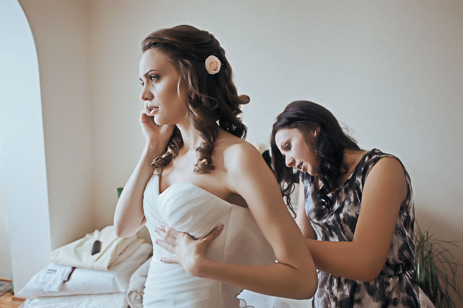 итак, 20.08.2011 - утро, 7.30 - встала без будильника, поплелась на кухню, чай с бутиком, потом полетела на депиляцию (т.к наконуне закончился воск у мастера, перенесла на утро, благо - в соседний подъезд надо было идти), быстро сделала депиляцию, прилетела домой, а там уже юлия разложила свои волшебные чемоданчики и готова делать из меня красоту. в это время из дому мама поехала в парикмахерскую, муж её за цветами в голову и браслетом для свидетельницы, мы с юлей остались в 2, спокойно сделали прическу, как раз подвзли цветочки - засунули, перешли делать макияж - приехала мама, но хорошо что не мешалась под ногами, я бы нервничала) пока делали макияж приехала люба со своим мужем владимиром и стали "подсматривать"... примерно в 11.30 приехала свидетельница, к этому моменту меня уже докрасили и людей в доме заметно прибавилось) и понеслось... одевание меня, суета пришежшего народу, мама бегает по дому - не успевает собраться, украшение подъезда для выкупа не успевается, приехали еще друзья - поахали, и тут мам просит звоинть жениху и говорить, чтобы приехал на 30 минут позже, звоню - а он уже выехал)))) ну и я спокойно сижу в комнате, жду.... а за дверью - суета, суматоха, паника) в 12, по-моему, приехал жених. выкуп был минимальный - но он там тоже отличился, я юмором он у меня) он даже ляпнул "а хули там" в ответ на фразу "ну что же, проходи в дом за невестой"...)))
