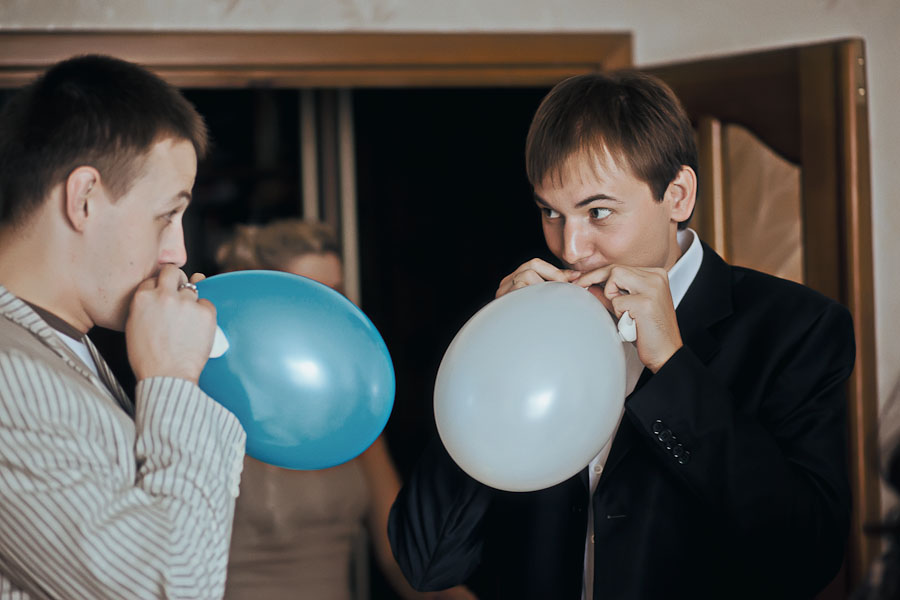 продолжаю... подошел муженек к моей двери - тянуть ленточки с невестой. ну и само собой моя ленточка была последняя (я не меняла в ходе вытягивания ленточки! он просто балбес, не угадал 4 раза подряд))) ) зашел, такой красавчик... ваще) сказал какая я у него красотка и почти даже расплакался (ага, он у меня сентиментальный) потом стадартная процедура распития шампани и слез мамы, куда же без этого?! и наконец-то мы вышли из дома, сели в наши красивые машинки и поехали в... ПАРК ГОРЬКОГО! кататься на каруселях!!! роспись же у нас была в 15.45) все друзья и мы покатались на цепочке, побегали по парку, накупили огромных очков и шариков и двинулись в загс. моя мама обомлела, когда увидела друзей, вылазающих из машины в этих огромных очках)! пришли в загс, записались, оказывается совсем и не страшно это! родственников и друзей было человек 50 наверное! хотя можно было только 30, но всем же хотелось быть ТАМ!
