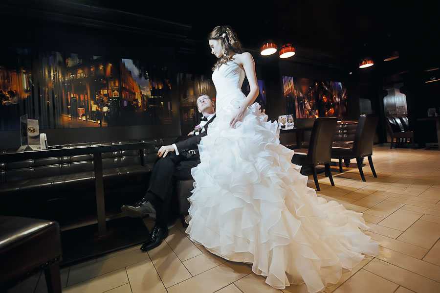 так-с, продолжим.) приехали мы в загс к 15.20, записались, разошлись по комнатам, пофотографировались, подурачились, выходим на регистрацию - вот тут я волновалась) еще прицепили мне деток к шлейфу, они мееедленно тянутся... ну в общем отцепила я их) стоим перед входом, а стремно)) сама регистрация прошла просто мимолетно! я только и помню что сказала "да", а муж - "согласен". потом еще была в тумане во время зала шампанского, ну а потом уже и ничего, снова веселье) вынесли меня из загса, обсыпали манетками (само собой парочку в лоб попало!) и мы поехали в оперный театр - т.к. погодка была дождливая и холодная. приехаи в оперный у нас было 40 минут до закрытия - мне каежтся вполне пладотворно их провели. нафотографировались!!! и рояль был) к нашим нарядам он так и просился;) после этого поехали в boulevard делать интерьерную съемку - заодно и кофе попили и супчика перекусили) кстати, там бесплатно можно фотографироваться! (это будущим невестам на заметку). далее - смотрим фото)
