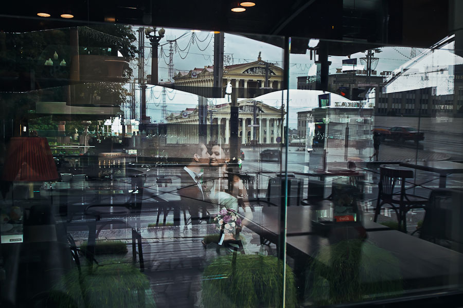 так-с, продолжим.) приехали мы в загс к 15.20, записались, разошлись по комнатам, пофотографировались, подурачились, выходим на регистрацию - вот тут я волновалась) еще прицепили мне деток к шлейфу, они мееедленно тянутся... ну в общем отцепила я их) стоим перед входом, а стремно)) сама регистрация прошла просто мимолетно! я только и помню что сказала "да", а муж - "согласен". потом еще была в тумане во время зала шампанского, ну а потом уже и ничего, снова веселье) вынесли меня из загса, обсыпали манетками (само собой парочку в лоб попало!) и мы поехали в оперный театр - т.к. погодка была дождливая и холодная. приехаи в оперный у нас было 40 минут до закрытия - мне каежтся вполне пладотворно их провели. нафотографировались!!! и рояль был) к нашим нарядам он так и просился;) после этого поехали в boulevard делать интерьерную съемку - заодно и кофе попили и супчика перекусили) кстати, там бесплатно можно фотографироваться! (это будущим невестам на заметку). далее - смотрим фото)