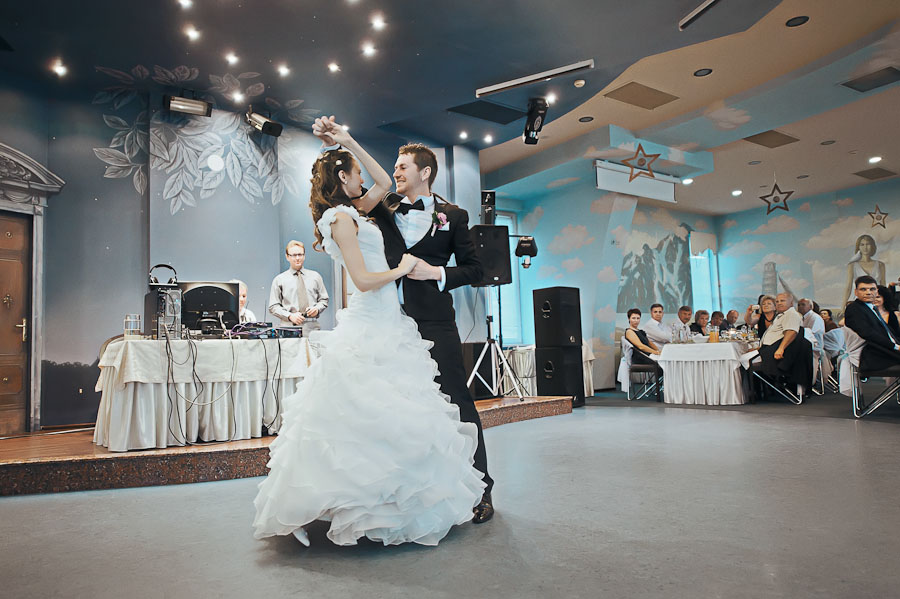 а дальше.... начались звонки от мамы с вопросами "кошда вы уже в ресторан приедете", хотя мы позаботились о гостях и заказали саксофон для фона в фуршетном зале (шампань и фрукты с конфетами), мы прорепетировали наш танец, залезли в машинку и приехали в ресторанчик. поднялись на лифте на 6 этаж (ресторан был "седьмое небо"), а там.... люди, саксофон, звон бокалов и КРИКИ типа "УУУУ!УРА!". накормили нас хлебом/солью, провели в зал для дарения подарков... и тут конечно ужас, у нас было 101 гость.... и это ДОЛГОЕ дарение... мучительно, но мы справились) сели за столы, перекусили, а мы т.к. уже супчика поели + я волновалась из-за танца - почти не кушали.... ведущий был шикарный, ненавязчивый, веселый, с новыми для меня конкурсами и шутками (владимир майков, 10/10), потом был первый танец.... коленки у меня тряслись) НО! мы не сбились ни разу! все попадали в музыку и даже я не убилась вальсируя в своем платье!!! потом стандартная программа танцы/конкурсы/еда. а в 10 вечера (примерно) был ФЕЙЕРВЕРК! - сюрприз от мужа) знает же, что я обажаю их.) потом был наш ОГРОМНЫЙ торт - 101 гость жеж. правда мы его так и не попробовали, но гости сказали вкусно было. ну и потом наконец-то мы поехали домой и я смогла принять горизонтальное положение! п.с. пока я вынимала шпильки из волос муж развлекался считанием денег и рассматриванием не денежных подарков, ну и долг супружеский я его заставила выполнять;)