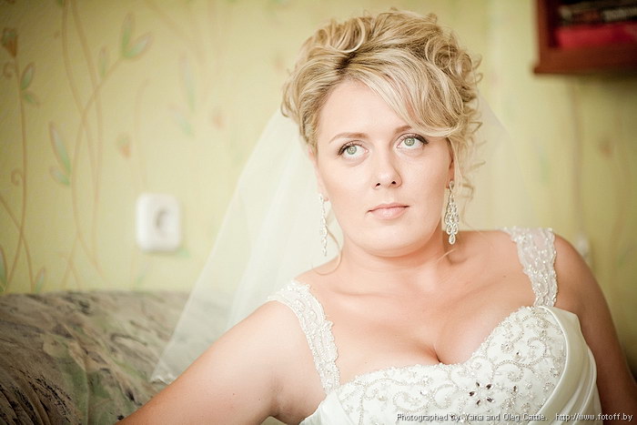 Ну что,начнём-с)) Предупреждаю сразу,что писать красиво я не умею)) 29.07.2011 Утро... Проснулась я раньше,чем зазвонил будильник,в 04:45.Лежу,прислушиваюсь к себе "Ну,что плакать будем?"На погоду даже внимание не обратила,да и темно ещё было.Выхожу из комнаты,все домашние ещё спят сладким сном)))Сварила кофе и пошла на балкон курить.Голова совсем пустая,никаких мыслей,эмоций,даже обидно стало)))Приняла ванну,потом уже родители встали и понеслось....Я всех предупредила,меня не трогать,вопросы не задавать,в комнату,где я буду собираться и наводить красоту не заходить,советов не спрашивать. В 6:15 приехала Диана Ясенцева и начала делать мне причёску.Она очень позитивный человек,мы шутили,смеялись.Потом,в 8:00 приехала Элина Лев.ООооооо,она принесла в мой дом смех,радость и ощущение праздника!!!Я очень переживала,что мы не успеем накраситься,а Элина сказала:"Да,плевать на время,лови последние моменты вольной жизни,неси кофе и пошли покурим"))))Вот стаю я такая с фатой на балконе с сигаретой,))) смеюсь как сумашедшая,люди идут на работу (пятница),смотрят на меня и улыбаются)))Суппер-позитивная невеста!Привезли мой букет,бутоньерки,браслет для свидетельницы,украшения для машин.Приехала Яна Катье с ассистенткой (фотограф),я если честно даже не заметила во сколько они пришли.Начали фоткать моё платье,кошку,туфли....9:30 пишу смс БМу,что машина за ним выехала,что б не забыл очки,и что я его очень ЛЮБЛЮ!В комнату зашла мама,увидела меня и разрыдалась.Я и сама была в шоке от такой красоты!Начали меня одевать.А в это время слышу ""Приехали!!!" и крики БМ под окном "Оля,я тебя очень люблю!!!!"Я стаю в платье и выбираю,что одеть:колготки,чулки или гольфы.В итоге одела бежевые гольфы))) хотя собиралась одевать свои красивые беленькие гольфы в сеточку и с ленточками,но в них не смогла обуть туфли(((( Начался выкуп,я была в комнате одна,слышала только смех.Стаю,смотрю в окно,прощаюсь мысленно с детством (которое до сих пор не могло никак закончиться),и так грустно вдруг стало.Я так долго ждала этот день и вот он настал.Я настоящая невеста,самая красивая,самая любимая.Даже сейчас слёзы наворачиваются.Я запомнила этот момент на всю жизнь.Потом открывается дверь (тихонько так) и я слышу голос БМ "Оля,повернись ко мне" (а я ж в окно смотрю,всё как в кино),я поворачиваюсь....Блин,какой он красивый,мой БМ,в костюме,с букетом (я никогда не видела его в костюме за 5 лет).Он падает на калено,вручает мне букет,потом целует...БМ не ожидал,что я буду такая,он был в лёгком шоке)))ПрЫятно... Быстренько выпили,мама через слёзы благославила нас иконой,завязали нам руки и мы пошли к машинам.Я побрасала конфеты и поехали.....