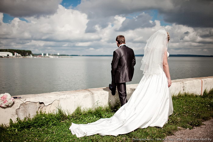 Фотосессия Выехали из дома мы в 11:00,всё по плану.Погода была просто суппер,как по заказу:солнечно,сухо и не жарко.Поехали сначала на Минское море.От моего дома 10 мин. езды.Гостей оставили около машин,сами пошли фоткаться.Я долго не могла сосредоточиться.Казалось у нас ничего путного не получится.Потом вошли в кураж и всё пошло как по маслу.У фотографов был очень интересный ход (как потом мы заметили по фото).Мы пазируем,потом Яна говорит:подождите,я настрою фотоаппарат,мы расслобляемся,полностью на своей волне,а в это время оказывается она нас фоткает))))И фото получаются очень живыми. После Минского моря мы поехали на Минск-Арену.Я вообще-то была против этого места.Там какие-то очень стандартные фото получаются.Я очень ошибалась,всё зависит от фотографа.Даже очень примитивное место можно обыграть по-разному.