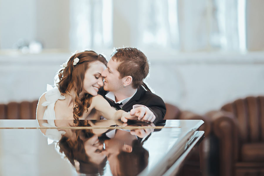 так-с, продолжим.) приехали мы в загс к 15.20, записались, разошлись по комнатам, пофотографировались, подурачились, выходим на регистрацию - вот тут я волновалась) еще прицепили мне деток к шлейфу, они мееедленно тянутся... ну в общем отцепила я их) стоим перед входом, а стремно)) сама регистрация прошла просто мимолетно! я только и помню что сказала "да", а муж - "согласен". потом еще была в тумане во время зала шампанского, ну а потом уже и ничего, снова веселье) вынесли меня из загса, обсыпали манетками (само собой парочку в лоб попало!) и мы поехали в оперный театр - т.к. погодка была дождливая и холодная. приехаи в оперный у нас было 40 минут до закрытия - мне каежтся вполне пладотворно их провели. нафотографировались!!! и рояль был) к нашим нарядам он так и просился;) после этого поехали в boulevard делать интерьерную съемку - заодно и кофе попили и супчика перекусили) кстати, там бесплатно можно фотографироваться! (это будущим невестам на заметку). далее - смотрим фото)