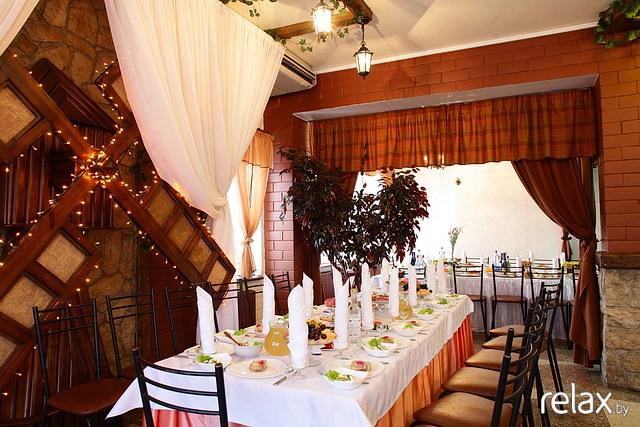 Девчонки, спасибо за поддержку! Рассказываю последние новости. БС посоветовала кафе "У Гаспадынi". Я на фотки посмотела и в принципе ехала без особого интузиазма. Но в живую оно оказалось достаточно неплохим и довольно уютным. Так что мы его забронировали. Заказ 200 тыс/чел. В эту сумму входит 2 горячих, 2 салата, около 5 видов холодных закусок, 100 г спиртного и обслуживание. Все остальное можно свое. Единственное, что оно как бы разделено на 2 части стеной. Получается как бы 2 зала. В 1 будут столы, а во втором можно танцевать. Как вы думаете, это будет нормально, удобно? Может кто-нибудь знает что об этом кафе? Сначала оно мне понравилось, а вот теперь начинаю сомневаться? Кто что посоветует?