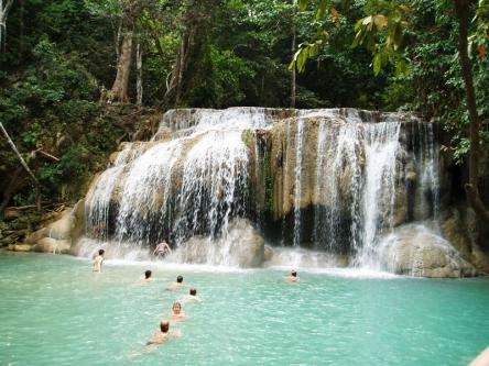Потом мы поехали в наш отель на реке Квай. Выглядит это дело так: домики на помпах стоят прям на воде. По сути они плавающие, только крепко привязаны). Очень атмосферно, надо сказать. Но ооочень жалко, что не оказалось с собой репелента, вечером комары меня с удовольствием погрызли.))) Около отеля нас ожидало последнее приключение на этот день. Нас всех погрузили на большой плот. Плот подцепил катер и мы поплыли по реке)). В это время на нас одели спасательные жилеты и объяснили, что с нами будут делать.))) Нас скинули с плота в реку, сам плот отошел ниже по течению и дожидался, пока мы приплывем к нему. Лажа намбер уан: я не умею плавать и ДИКО боюсь воды.))) Лажа намбер ту: течение сильное, как потом оказалось. Не проплыть мимо плота оказалось очень непростой задачей))) Но, благодаря всему выше сказанному, я получила, наверное, самые незабываемые впечатления из всей группы. Пы.Сы. вопрос, который задали все, кто смотрел фотки. Крокодилов мы не встретили)))) Вода мутная из-за обильных дождей, но не вызывает при этом ощущения грязи.