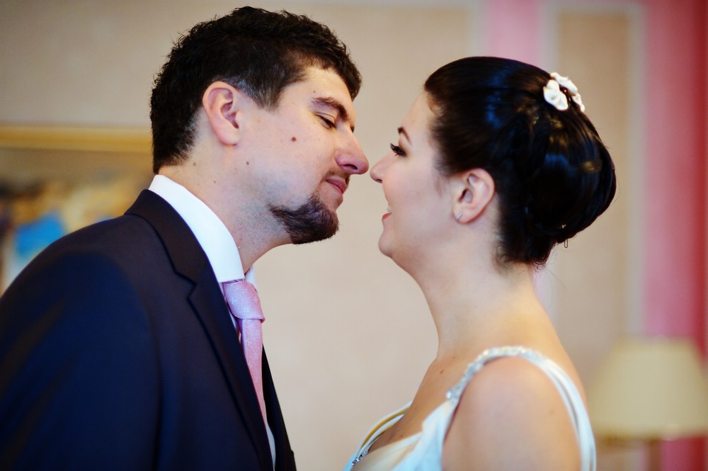 Встреча влюбленных в день свадьбы.