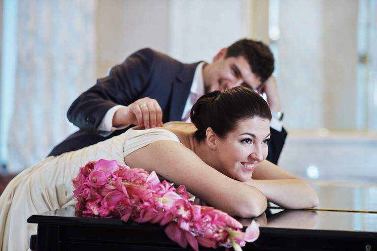 Поржали смотря как фотографы дрессируют молодоженов. Сделай так посморти так расслабься. Наши Бондику говорили Алексей "палишся" не смотри в камеру на жену смотри, а то улетит. Потанцевали на фоне шикарных люстр (еще один мой фетиш).