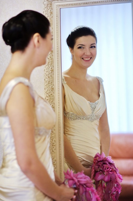 Приехали в ЗАГС и вот тут уже все пипец тощий сбежал перекатываясь и переваливаясь с ноги на ногу вкатился в душу полный пипец осознание потери свободы накотило так, что началась истерика и выражалась она в том, что крылья выросли и я полетела. До сих пор Бондик шутит, что на земле меня удерживает только кирпич в сумочке.