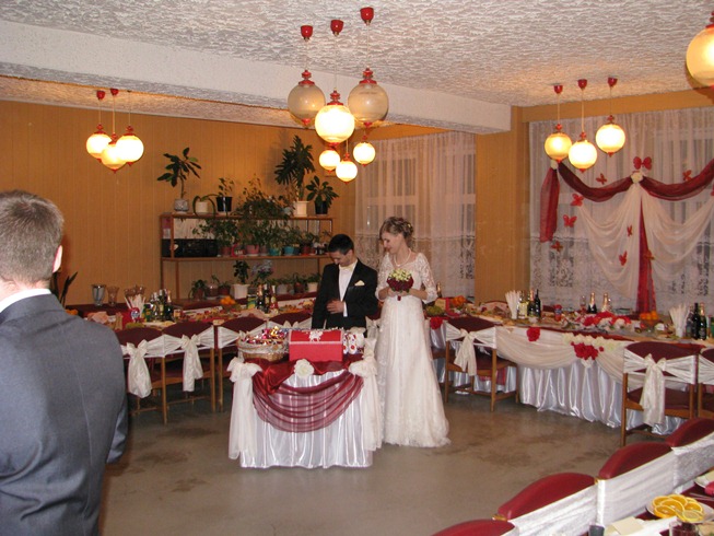 Настя Шатерник, ИнтерФлорДизайн. Супер, супер, супер!!! Мегареспект этому потрясающему человеку! Мы с ней продумали все детали до мелочей, но я все равно не ожидала, что из нашей задрипезной столовой можно сделать такую конфетку! Ну так красиво было, так красиво! А БУКЕТ!!! Я чуть в обморок не грохнулась от счастья, когда его увидела!))) Я, конечно, знала, что он будет состоять из маленьких розочек, а по бокам будут бордовые, а сверху бусинки... НО ЧТОБ ЭТО БЫЛО ТАК КРУТО!!!!! Ничего лишнего, но, тем не менее, ярко, нарядно, необычно! Короче, я в воскресенье первое, что сделала проснувшись - это позвонила Насте и минут пять благодарила её за букет! Буду всем её рекомендовать!!!!! Ставлю просто