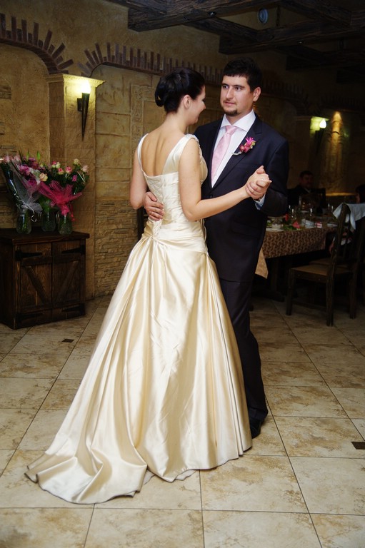 Мы опоздали к столу ровно на столько на сколько я предполагала. Почти все мои перестраховки в какой то степени понадобились. Вечер был очень приятным. Нервотрепки ни какой не было в кафе были именно те официанты, которые знали нас в лицо. Ведущая Ольга Куницкая постаралась и выложилась на все 200 %. Нам с Бондиком было весело, прикольно, забавно и удивительно. Мы чувствовали, что все внимание на нас. Это даже не напрягало. Все текло отлажено. Чувствовалось, что ведущая за те сутки (что у нее были, так как мы поменяли ведущего из-за его болезни за день до свадьбы) подготовилась к моим НЕНАДО. Все пожелания в музыке она исполнила. Это очень льстило моему самолюбию. Спасибо тебе Оля ты молодец.