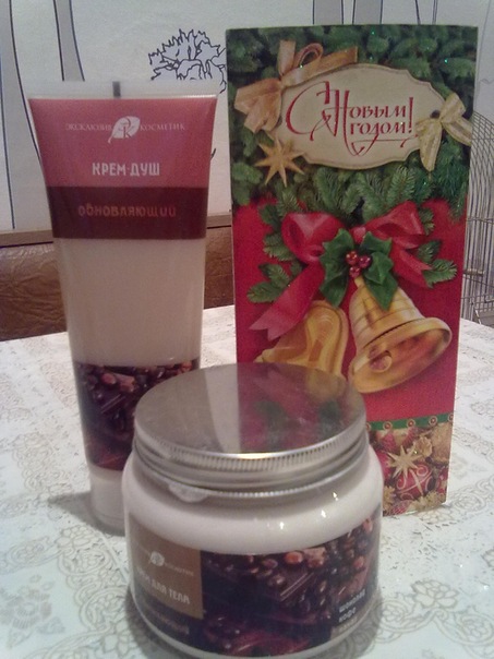 А вот мой подарочек. спасибо моему деду морозу. ой как люблю всякие кремики для душа и тела. уже жду субботы, мои родители приедут и привезут мне мой подарочек. на НГ буду пахнуть вкусненько. спасибо еще раз)))))) извиняйте за не хорошее качаство фото)))))