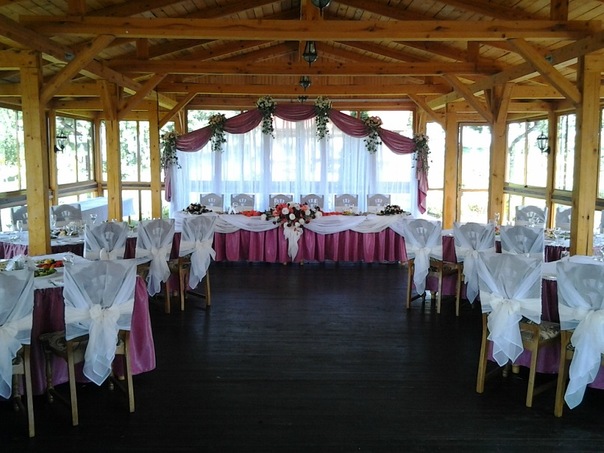 Привет) У нас летом свадьба, и мы тоже хотели на свежем воздухе. Смотрели разные загородные кафе, главное условие было - летняя терраса. Рассматривали: - кафе "Корсар" (там можно арендовать зал банкетный и к нему идёт дворик милый очень, там можно столики поставить). Отказались, так как там кто-то уже занял на наше число, можно было заказать, только если бы мы привезли в тот же день плату за аренду, а это 300 долл., а потом ещё + 200-250т. на человека - кафе "Очаг" - там балкончики есть) На человека 250, но не понравилось, как снаружи выглядит, мы и не заходили - красивое кафе "Оазис", на человека вроде тоже 200-250 - "Шашлычный двор" - потрясающе выглядит (как терраса, выходящая в дачный сад, с видом на озеро))) На человека - 200-250 вроде плюс не помню что ещё смотрели Проблема в том, что везде отказывались брать предоплату за террасу. Говорили: "Мы вас запишем, но точно скажем уже в мае-июне". Я не хочу за месяц-2 оказаться без места, поэтому отказались от всех этих вариантов.