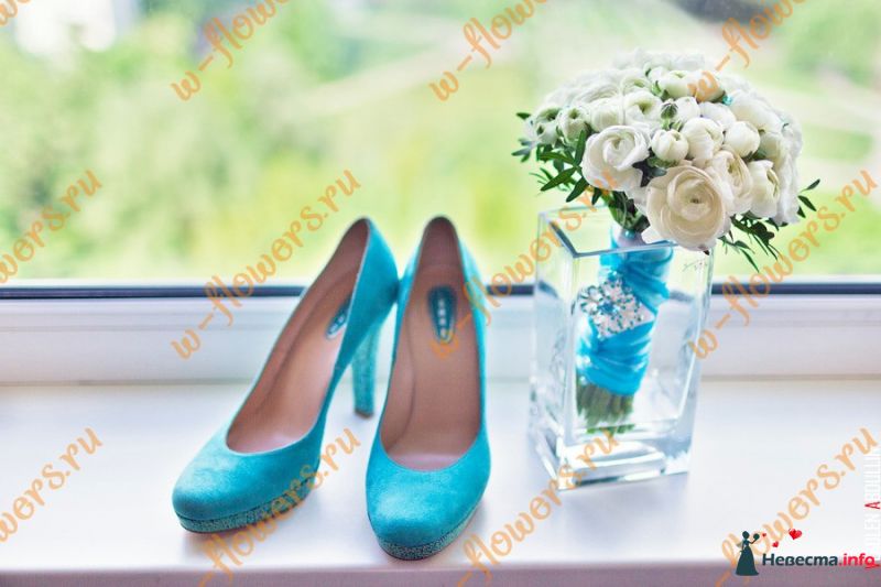 Бирюзовые (окрашенные) каллы - это жесть. Раскрашенные в ядовитые цвета свадебные цветы выглядят не очень. Цвет лучше добавлять лентами, фатином, перышками, бусинками и т.д. и т.п. А цветы - только живые и натуральные.(ИМХО)