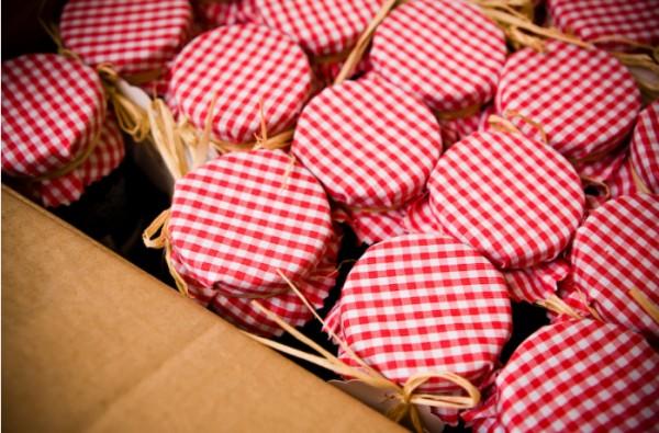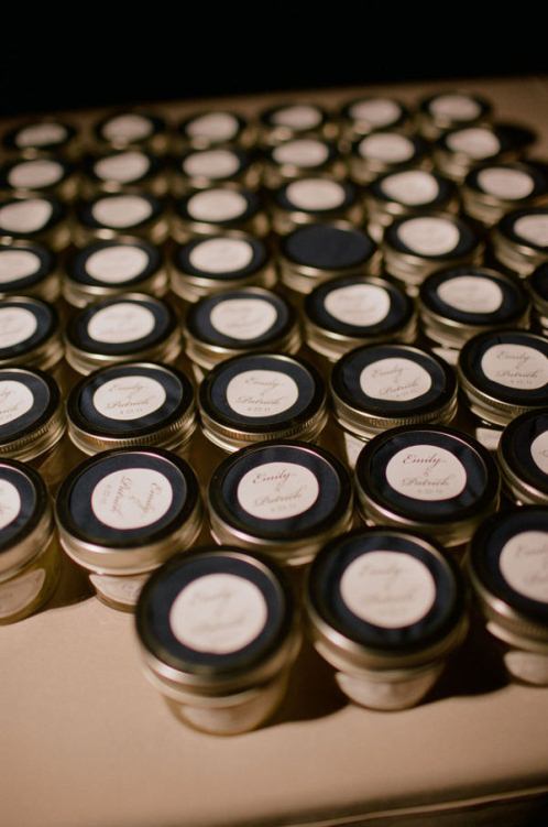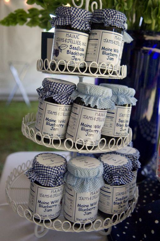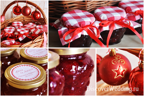 Стильно и красиво будет смотреться если банки будут одного размера и с одинаковыми крышками, а еще крышки можно покрасить из баллончика и наклеить ваши инициалы, дату свадьбы, герб семьи