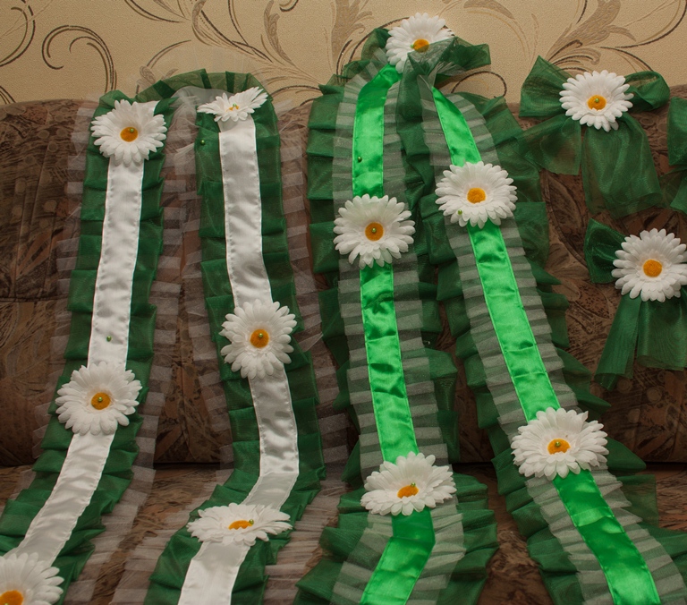 Юлия-я украшения на авто и бросалка очень нравятся  в подушечке я наверное заменила бы по середине ромашку на что-нить другое, но это лично мое мнение, а так в принципе красиво и всё в одной тематике,круть