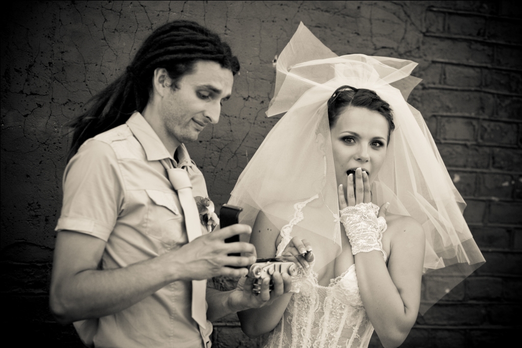 Помню, как нас позвали.. и вот мы стоим перед дверями, я в прострации, не понимаю, что происходит..И вот ждем мы, ждем..и вдруг открываются двери (там уже позждравляют молодоженов), закрываются...ОПЯТЬ открываются и на нас откровенно глазеют