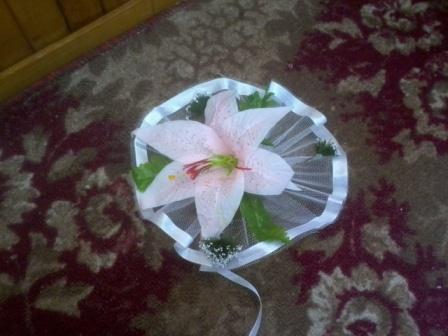 И еще украшения на машинки. Кольца будут на первую машину, к ним такие вот лилии на ручки. А композиция на другую. Ленты тоже будут, но я их уже выкладывать не буду. они стандартные.