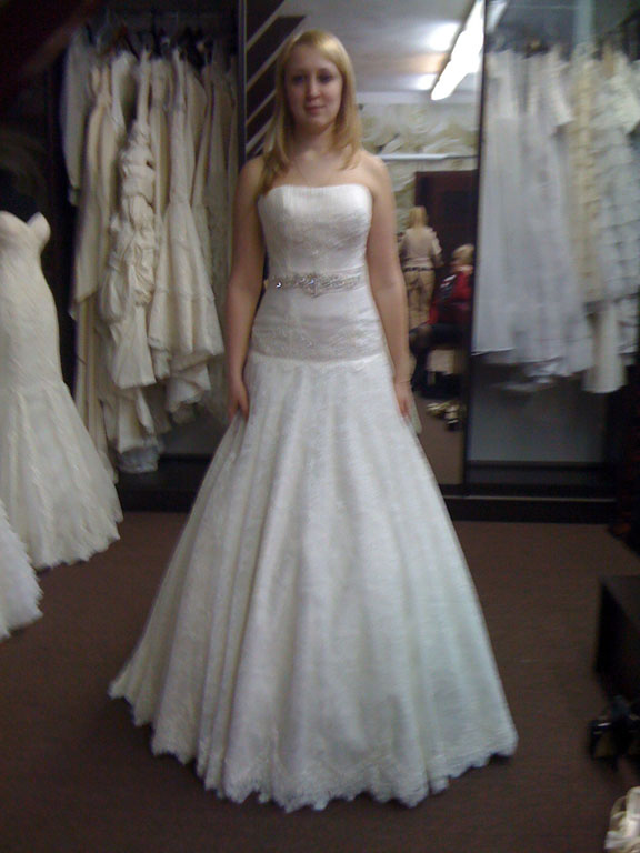 Девочки, я вроде нашла свое платье. Вот хочу с вами посоветоваться. Мне понравилось платье, но вот верх не очень. Они могут пошить с другим верхом, для этой цели померяла другое платье, а юбку приложили от первого. Еще юбку можно сделать чуть выше, чем она в оригинале, т.е. талию немного менее заниженую. Посмотрите, как вам? А еще там не подкалывается шлейф. Что с ним делать и будет ли удобно ходить, не будет ли он после прогулки черным-черным? Короче, нид ё хелп!!