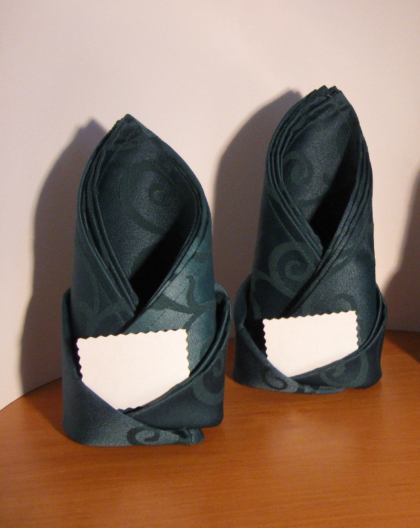 DOMASHKA, спасибо  Сегодня сшила 4 салфетки для стола молодоженов зеленого цвета (фото 1). Сложила их таким способом, чтобы можно было либо карточку рассадки разместить, либо другую "красивость" (фото 2, салфетки с пока только обычными карточками). Теперь ломаю голову, шить ли салфетки для гостей или обойтись бумажными (как, например, на фото 3). Что думаете?