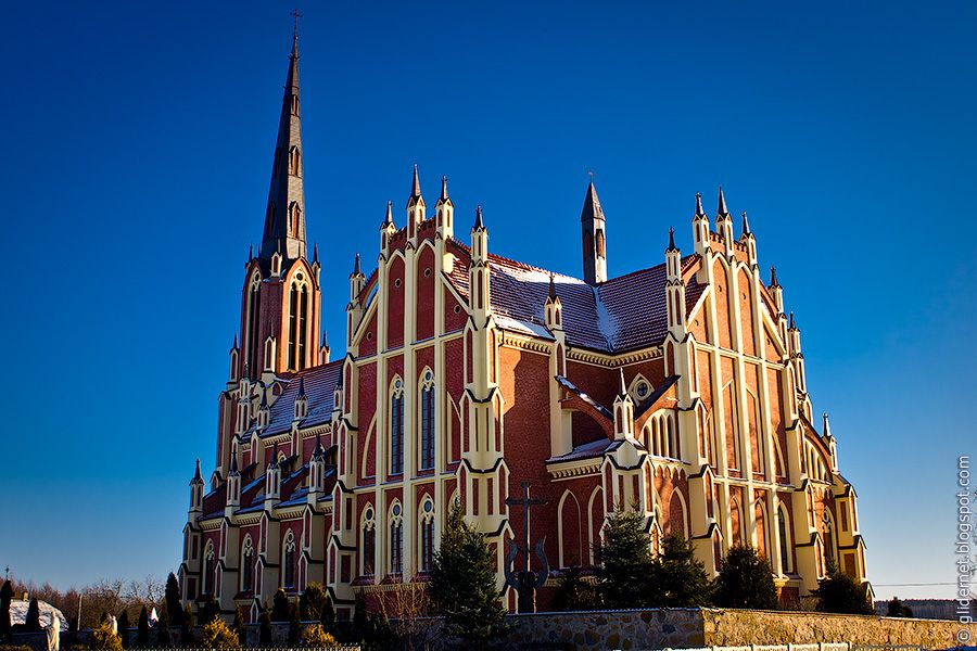 Девочки!!!! За выходные у нас родилась идея. Из-за некоторого непонимания со стороны БС, мы думаем вместо торжественной регистрации в ЗАГСе сделать торжественное венчание в одном из самых красивых и самых высоких костелов Беларуси (высота - 61 метр - выше двух девятиэтажек!) :)... в костеле Пресвятой Троицы в Гервятах. Фото этого храма уже были показаны в темке раньше, но я решила еще раз вывесить их... А распишемся мы в ЗАГСе в будний день перед свадьбой.