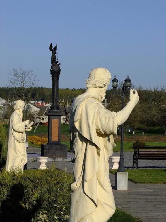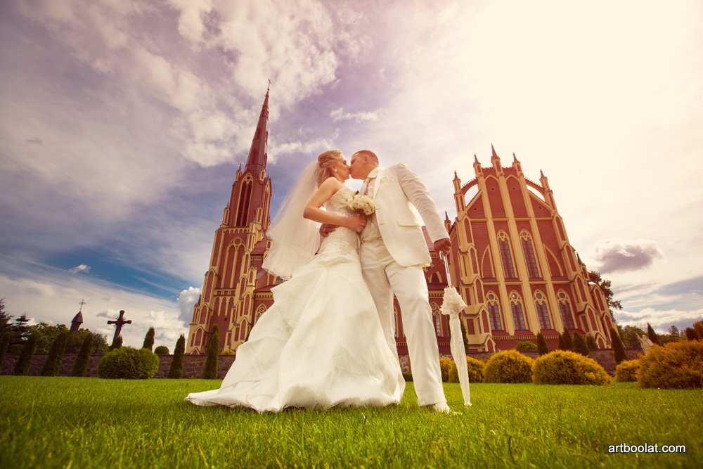 + перед костелом разбит чудесный парк с идеальным газоном, туями и скульптурами, редкими растениями... там же можно устроить фотосессию... да и гостям будет интересно там провести время...
