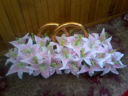 И еще украшения на машинки. Кольца будут на первую машину, к ним такие вот лилии на ручки. А композиция на другую. Ленты тоже будут, но я их уже выкладывать не буду. они стандартные.