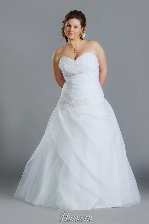 Пойдем по порядку №1 - слишком утяжеляет плечи и грудь за счет широких шлеек из тяжелой ткани №2 - опять слишком большая грудь №3 - из этой примерки больше всего нравится. Во-первых, тебе хорошо такой цвет, во-вторых, косая складка под грудью подчеркивает талию и более темный верх делает грудь меньше. №4 - вроде и неплохо сидит, но мне мало в нем твоей индивидуальности. Оно не подчеркивает твои черты. №5 - слишком облегает талию и морщит №6 - верх без болеро был бы симпатичным, но такая юбка абсолютно не твоя. №7 - слишком заниженная талия, все-таки тебе нужен чистый А-силуэт от бедра. №8 - вроде в талии и в груди неплохо, но мне не нравятся в нем плечи. Все это чистой воды ИМХО. Надо искать еще. Попробуй сходить в салон "Мечта невест" на Хоружей, 3А. Там есть платья больших размеров и разных фасонов. http://nevestam.by/catalog_big