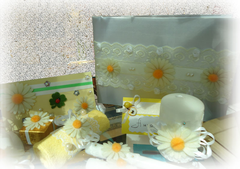 А корзинки для чего? Для бонбонок, лепестков? Купи плетеные корзиночки и прикрепи к ним ромашки, будет очень весело. Если времени нет, бонбонки делай лучше простые коробочки, вот такие, они быстро и легко делаются. Вложение: