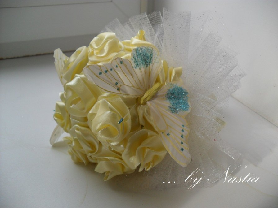Отличный букет! Только, если честно, я бы вообще от бабочек отказалась, но это лично моя нелюбовь к насекомым А никто не знает из чего ручки у таких букетиков делают?