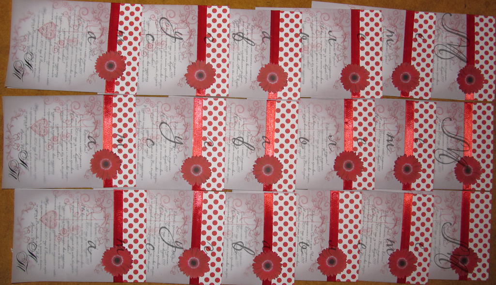 Продолжу. Цвета свадьбы будут белый, красный и немного коричневого. Немного уклон на ретро. Вот наши приглашения
