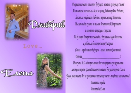 Zorka писал(а): Eleno4ka, приглашение милое, вот толко фотки ваши по отдельности смущают... я бы общую вставила! А мне кажется нормально.Здесь тоже есть своя логика.Они еще пока пара и между ними Love,пока они существуют по отдельности,а вот как обьявят мужем и женой-тогда уже одно целое!