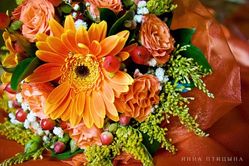 Оранжевый цвет для осенней свадьбы мне кажется очень здоровский))) а тыквочки так это вообще, ммм, сказочно) Тем более не обязательно только оранжевый цвет, можно взять к нему пару вспомогательных. Вот тебе картинки для вдохновения, может что-то приглянется или натолкнет на мысль о цветовой гамме)))