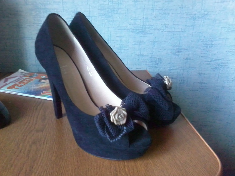 Фото туфелек. Фотки, конечно же, корявые, т.к. сделаны на телефон ещё днём, а сейчас их фоткать бесполезно, они кажутся чёрными.