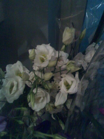 Прическа "греческая":закрутка сзади волос к верху,простая совсем. А вот цветы - хотелось,что-то в духе пионов. Цветок большой,красивый... Но вот светлых пионов не бывает в сентябре... Что же выбрать из стойких цветов?