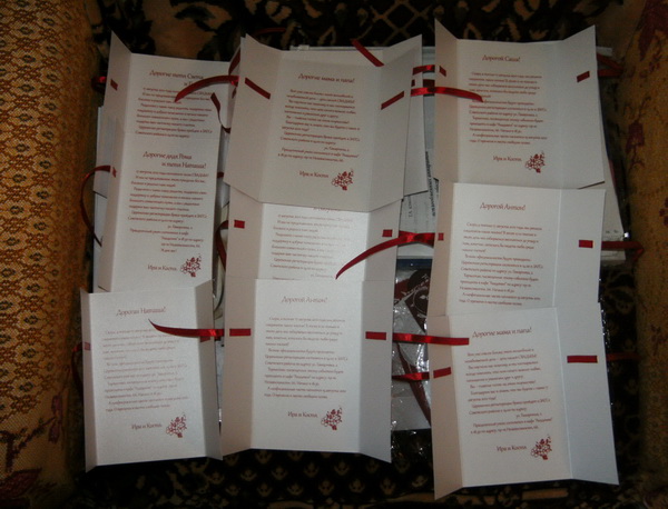 Вечером занимались ремонтом и вручили 2 пригласительных: моим родителям и моему лучшему другу. Все боялись развязывать бантики