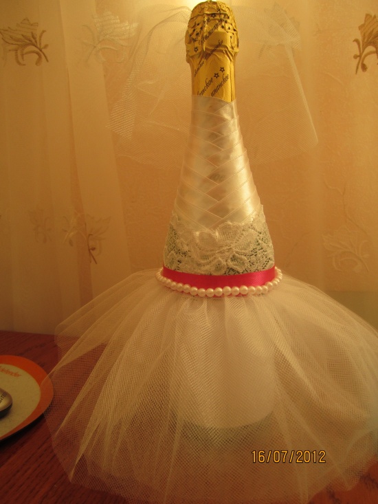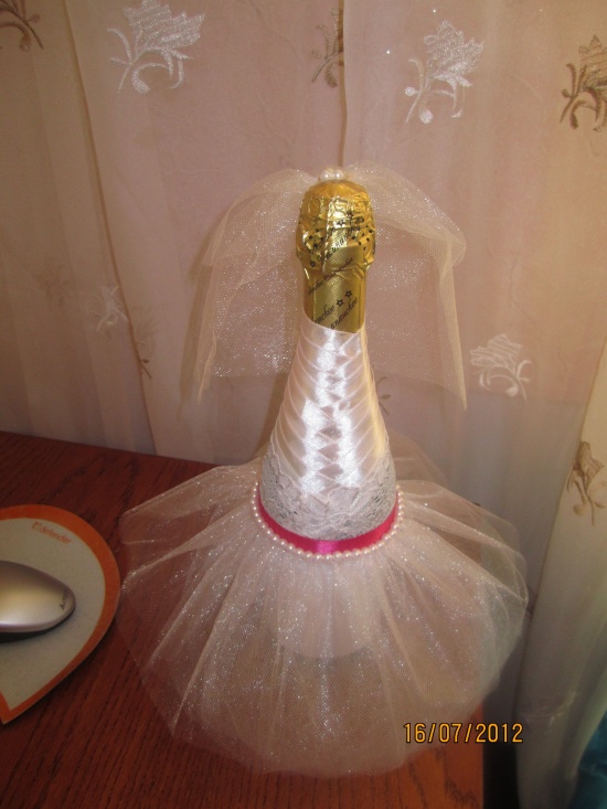 Вот нашла вчера у себя бутылочку шампанского и от нечего делать сворганила невесту  (может получилось не так как задумала,но для меня это уже достижение  ) вот думаю еще и жениха сделать