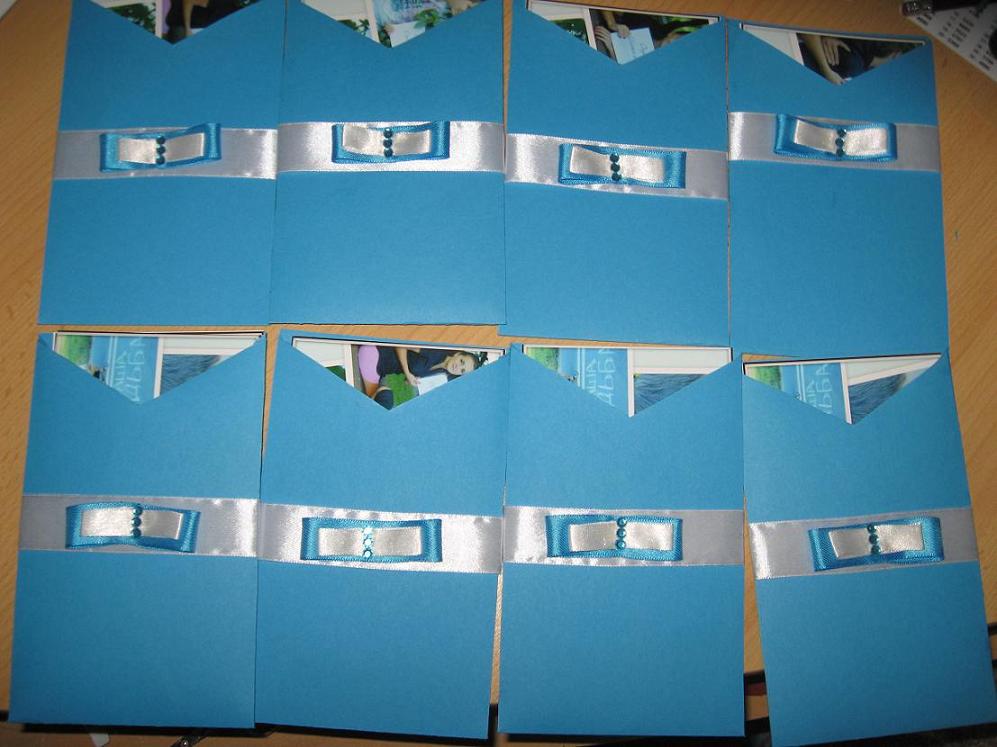практически выполнен 1 важный пунктик - приглосики, осталось 14 штук, уже жду недождусь, когда подем их раздавать  а после того как БМка пофоткался, он так проникся всем этим, что сам вызвался помогать, я была очень удивлена, это наверное из той серии, как прочитала в Олиной темке, пока БМка сам не побывал на выездной регистрации не понимал что это  теперь я поняла как нужно этих мужчинок привлекать и заинтересовывать а вот и мои творения, от начала и до конца содранные у Кати